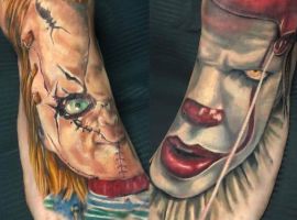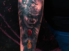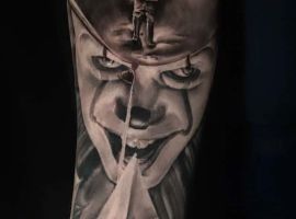 Сегодня в тату моду стремительно входит стиль хоррор, само название которого говорит само за себя. Люди с удовольствием наносят на кожу реалистичные изображения устрашающих персонажей известных фильмов ужасов. Так появились и татуировки с клоуном Пеннивайз из фильма «Оно». Подробнее об этом расскажут специалисты тату салона Альянс в Киеве.