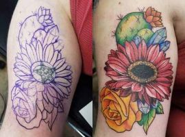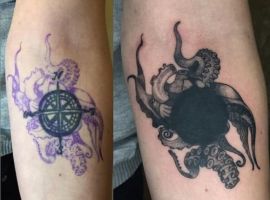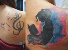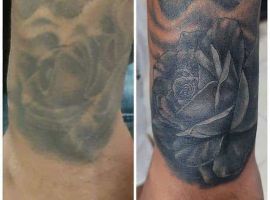 Мастера студии «Альянс» в Киеве утверждают, если черную татуировку предварительно осветлить лазером (несколько сеансов), чтоб она стала необходимого серого оттенка, тогда сверху можно положить насыщенный цветной пигмент. Главное, грамотно просчитать, сколько конкретно сеансов лазерного осветления необходимо, чтоб выполнить желаемый эскиз. В этом Вам с радостью помогут опытные мастера.