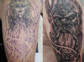 Итак, рассмотрим вариант перекрытия старой татуировки новой более детально. Считается, что существует 2 вида исправления неудавшегося нательного рисунка. Первое – это исправление татуировок, второе – полное перекрытие. В первом случае, мастер просто придает татуировке новых красок, корректирует, где это возможно, линии и контура, если необходимо, добивает рисунок, добавляя новых деталей. Реставрация тату возможна, если в общем-то тату Вам нравится, но то ли с годами, то ли из-за безответственного тату-мастера, рисунок не идеальный и требуется коррекция тату.