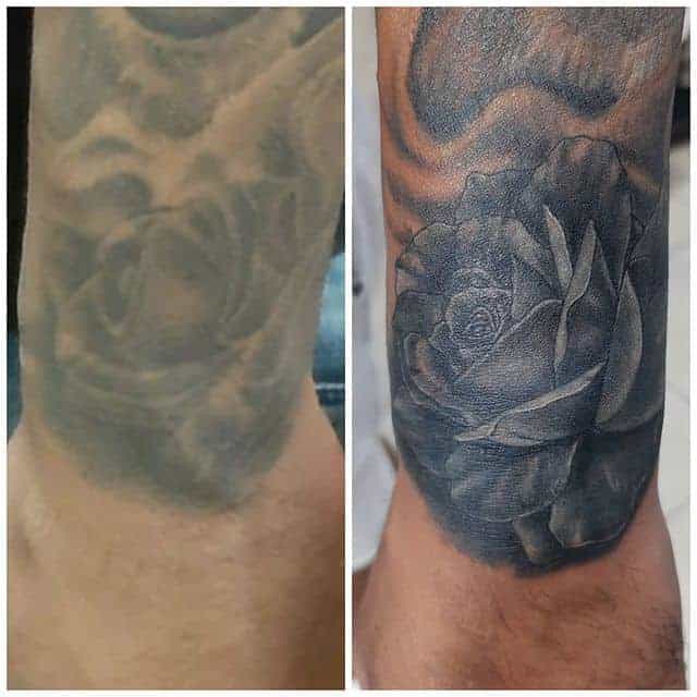 Мастера студии «Альянс» в Киеве утверждают, если черную татуировку предварительно осветлить лазером (несколько сеансов), чтоб она стала необходимого серого оттенка, тогда сверху можно положить насыщенный цветной пигмент. Главное, грамотно просчитать, сколько конкретно сеансов лазерного осветления необходимо, чтоб выполнить желаемый эскиз. В этом Вам с радостью помогут опытные мастера.