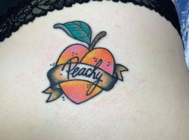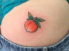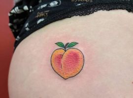 Тату персик имеет сугубо положительные значения. Обычно выбирают этот фрукт в качестве идеи для нательной живописи молодые девушки, которые хотят подчеркнуть свою молодость, юность, беззащитность, мягкость и нежность. Нужно отметить, что изображение персика на бедре (на попе) смотрится и несколько кокетливо, игриво и даже сексуально. Если вы выберете тату именно с целью подчеркнуть свое женское обаяние, то отлично будет смотреться персик на ягодице.