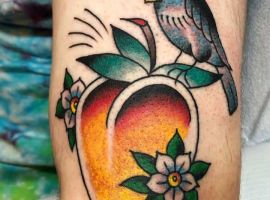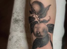 Татуировки с фруктами смотрятся невероятно привлекательно и живо. Персик – это не только вкусный и ароматный летний фрукт. Это и необычный художественный символ, который является символом юности. Тату персик также символизирует возобновление жизни, постоянный расцвет. Интересно и значение цветка этого дерева. Розовато-белые цветочки означают весну, женское начало, мягкость. Поэтому часто фрукт изображают совместно и с цветущими веточками растения. Мастера тату салона Альянс с радостью выполнят для вас такую стильную татуировку.