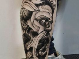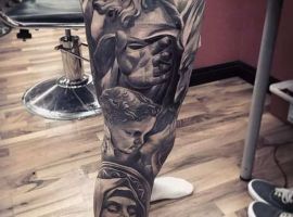 Чаще всего для набивания эскиза, где изображено божество, выбирается стиль реализм. В цветном и монохромном исполнении такой рисунок выглядит одинаково хорошо.