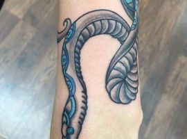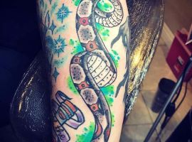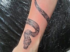 В свою очередь, обозначение тату питон может быть очень неоднозначным. У некоторых народов именно его ассоциировали с самим дьяволом. С другой стороны, это будет символизировать большую силу и могущество, умение получать свое, достигать власти и влияния. Такую идею точно не выберет слабохарактерный или трусливый человек.