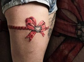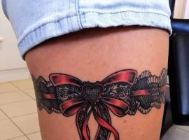 Популярностью пользуются татуировки в стиле реализм. Кажется, будто их можно потрогать и ощутить ткань и банты. Есть множество вариаций при нанесении этих эскизов на кожу: