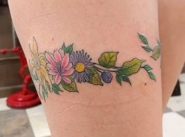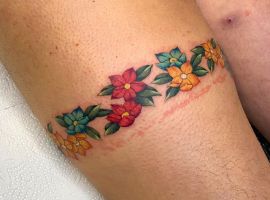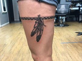 - Цвет. Необязательно ограничиваться только одним цветом. Например, популярно делать тату подвязки в черно-красном цвете, что отражает сексуальность человека. Некоторые предпочитают более спокойные и приглушенные оттенки, отражающие нежность и чувственность натуры.