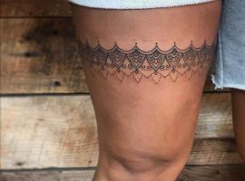 Посмотрите галерею с фотопримерами тату подвязка, чулки
