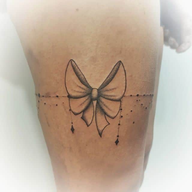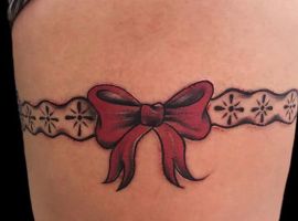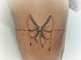 Популярностью пользуются татуировки в стиле реализм. Кажется, будто их можно потрогать и ощутить ткань и банты. Есть множество вариаций при нанесении этих эскизов на кожу: