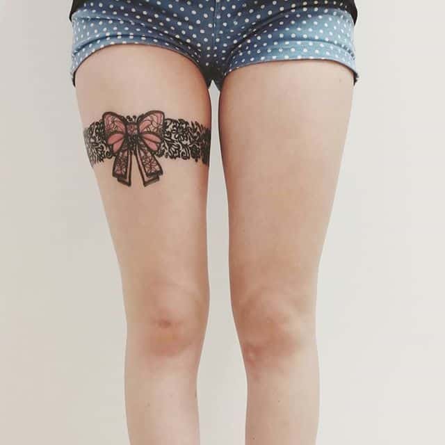 Посмотрите галерею с фотопримерами тату подвязка, чулки