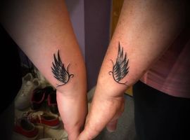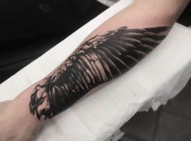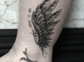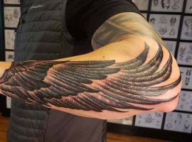 Татуировка в виде крыльев – эффектный символ с положительным значением. Его можно разместить на спине, груди, плече или запястье. Эскиз может быть миниатюрным, средним или большим. Возможны монохромные или цветные варианты. Всё зависит от личных предпочтений. Мастера салона Альянс в Киеве могут создать эскиз по Вашим пожеланиям.