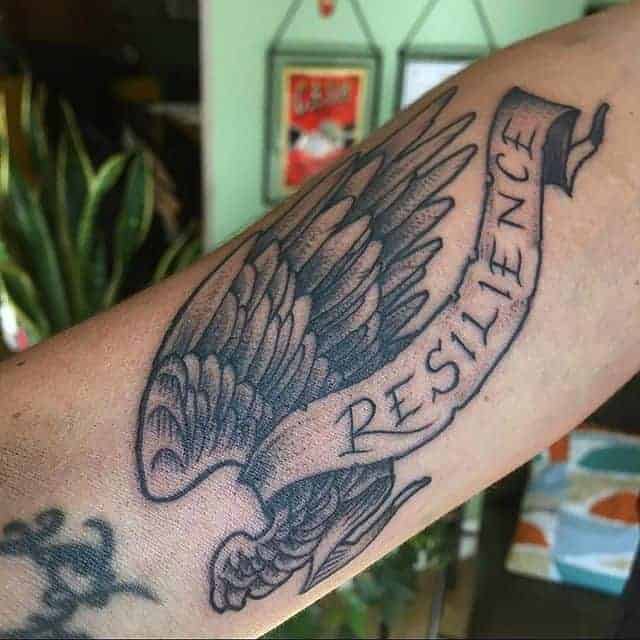 Представители сильного пола выбирают монохромные рисунки, строгие линии, чёткие силуэты. Эскизы выполняются насыщенным чёрным цветом. Их размещают на плече, спине, ногах. Главное значение картинки – свобода, независимость, отрицание приземлённых низменных проблем.