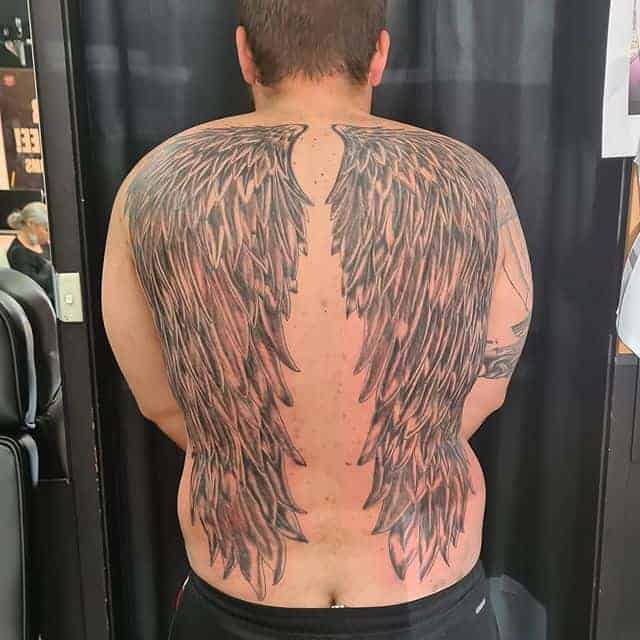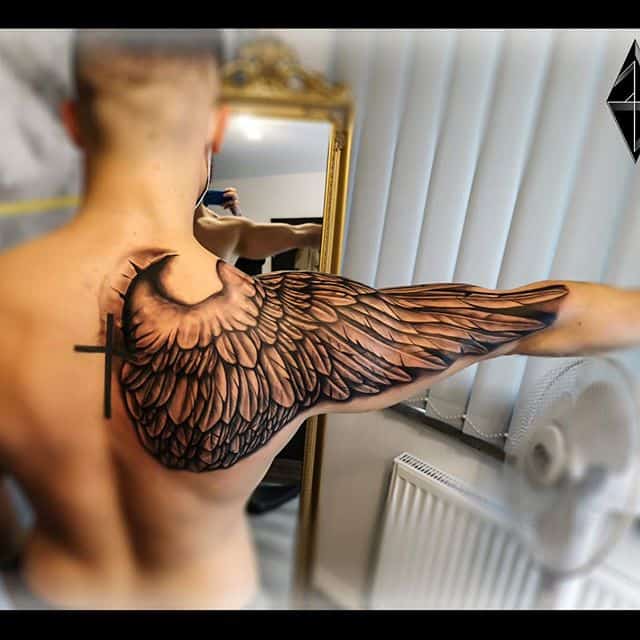 Раскрытые крылья на спине для мужчины – рисунок, символизирующий свободный полёт.