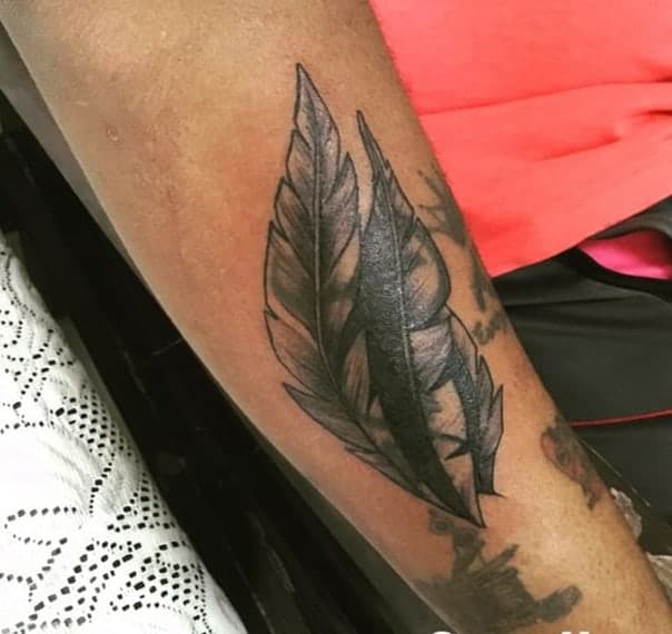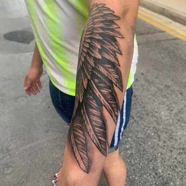 Тату крылья на ноге для мужчины – знак противоречивости характера. Такой человек любит риск, готов идти на авантюры, бросать вызов общепринятому мнению. Если рисунок сочетается с черепами, ножами, оружием, то его обладатель – сильная личность, способная противостоять другим и отстаивать свою точку зрение. Это прирождённый лидер, смело идущий на отчаянные поступки.