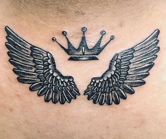 Такие тату наносили на своё тело колдуны, шаманы, знахари. Рисунок считался знаком пройденного пути. Он символизировал огромный багаж знаний, умение найти выход из любой ситуации. Тату крылья на шее, груди или спине сегодня – эскиз для мудрых, находчивых людей.