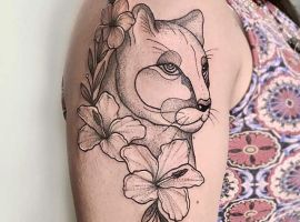 Татуировки на теле женщины. Яркая, самодостаточная и властная – прилагательные, которые описывают девушку с татуировкой пумы. Дикая кошка, которая умело выслеживает добычу и поражает своей грацией, заставляла восхищаться собой, но лишь издалека. Ведь если подойти к пуме слишком близко, своенравная кошка может отомстить нежданному гостю. Поскольку в дикой природе пума живёт в одиночестве, рисунок на теле женщины означает её тягу к свободе, отстаиванию личных границ.