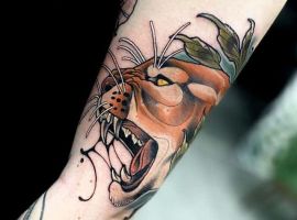 Обычное место для такого нательного рисунка: спина, рука, икры. Девушки часто выбирают место от бедра до талии. Размашистая пума в прыжке характерна для людей, которые любят чётко устанавливать границы, прямо говорят о своих намерениях и не отрицают своих лидерских качеств. Очень выгодно будет смотреться голова пумы на икрах или предплечье.