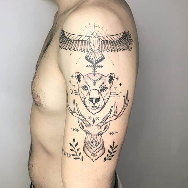 Татуировка на теле мужчины. Раньше пуму набивали войны, дабы песчаная кошка принесла им удачу. Теперь символика также означает удачу, только в семейных и бытовых делах. Мужчина с татуировкой пумы притянет к себе хорошую и прибыльную работу, мудрость и моральную силу. Носитель будет позиционировать себя как главный кормилец и защитник своей семьи, способный должным образом ухаживать и заботиться о своей женщине и детях.