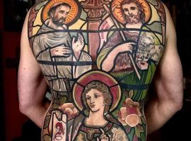 Татуировки на теле не особенно приветствуются церковью. Однако, это не останавливает многих людей от того, чтоб сделать религиозные тату. С помощью такой татуировки люди показывают не только то, что они верующие, но и получают своеобразную «защиту». Считается, что икона ли крест, нанесенные в виде изображения на тело, охраняют человека, помогают ему достичь желаемого. Конечно, мастера тату салона Альянс готовы выполнить для вас такие татуировки по индивидуальному эскизу.