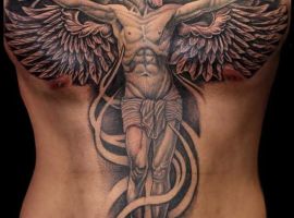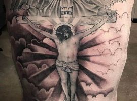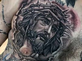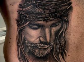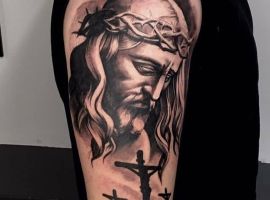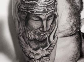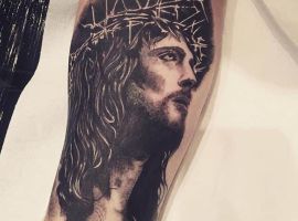 - Изображение Христа. Конечно, эта татуировка говорит об истинной вере человека. Основные ее значения будут связаны с самоотверженностью, жертвенностью, отсутствием эгоистичных порывов. Другое значение – это искупление грехов человека. Возможно, человек, выбирая несмывающиеся изображения Христа, хочет рассказать о том, что он до конца своих дней будет сожалеть о некоторых поступках.
