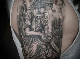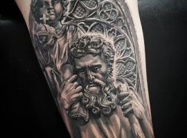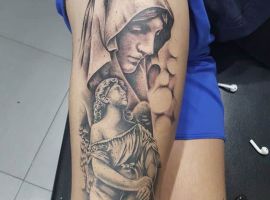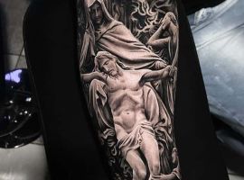 Конечно, это далеко не все религиозные тату, которые вы можете увидеть. Есть и репродукции икон, изображения других святых, более неординарные решения. В любом случае мастера нашего тату салона Альянс в Киеве выполнят для вас такую необычную татуировку по индивидуальному эскизу. Обращайтесь!