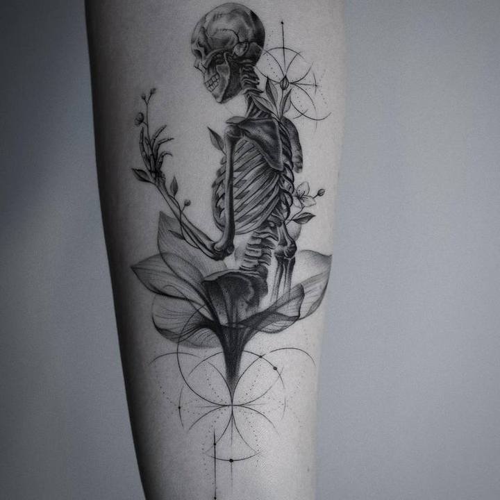 Эскизы с рентгеном чаще выбирают представители сильной половины, но иногда девушки наносят рисунки с просвеченными цветами. Значение тату частей тела под икс-лучами для мужчин следующее: