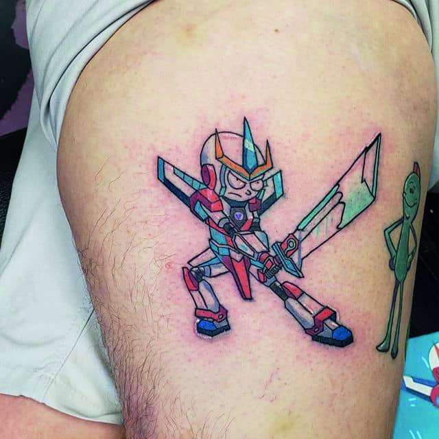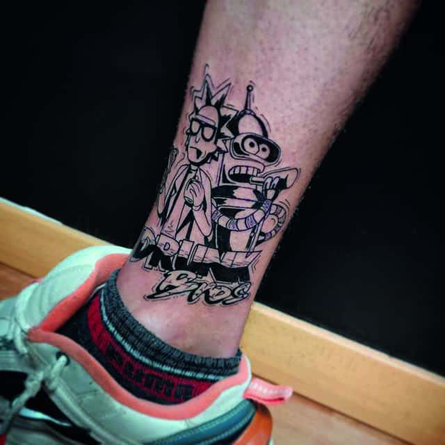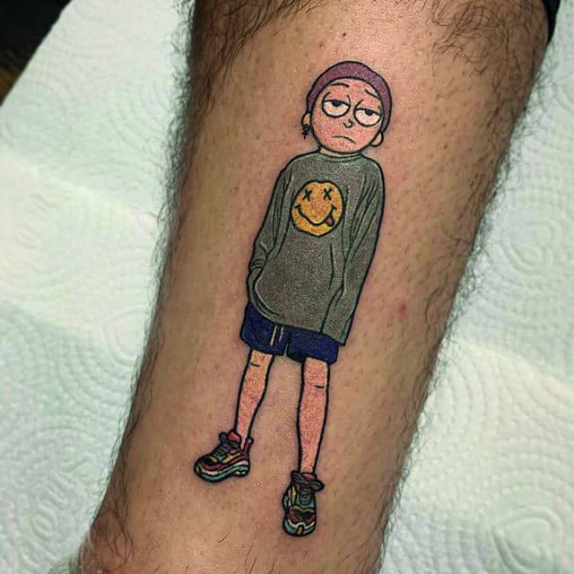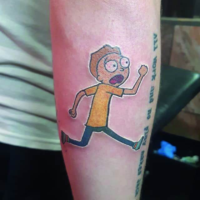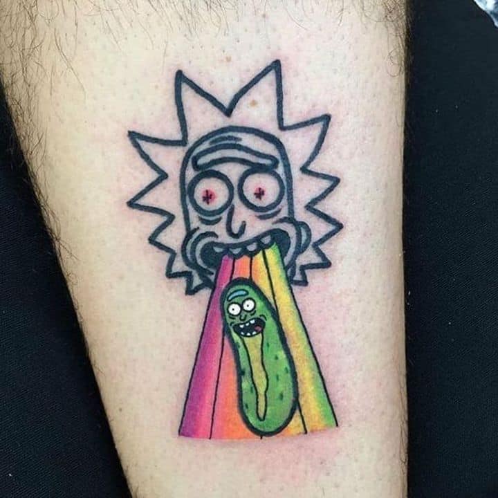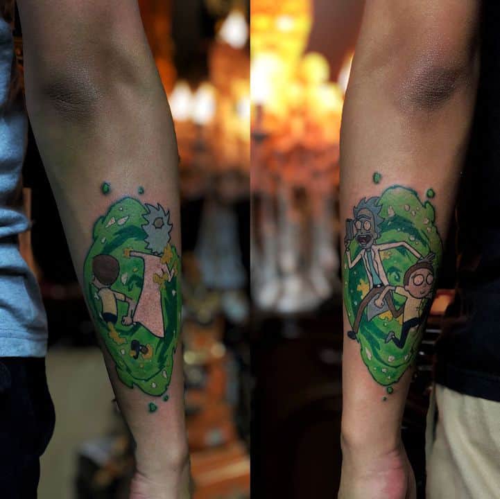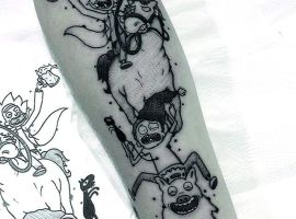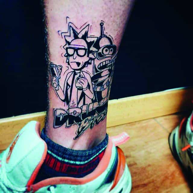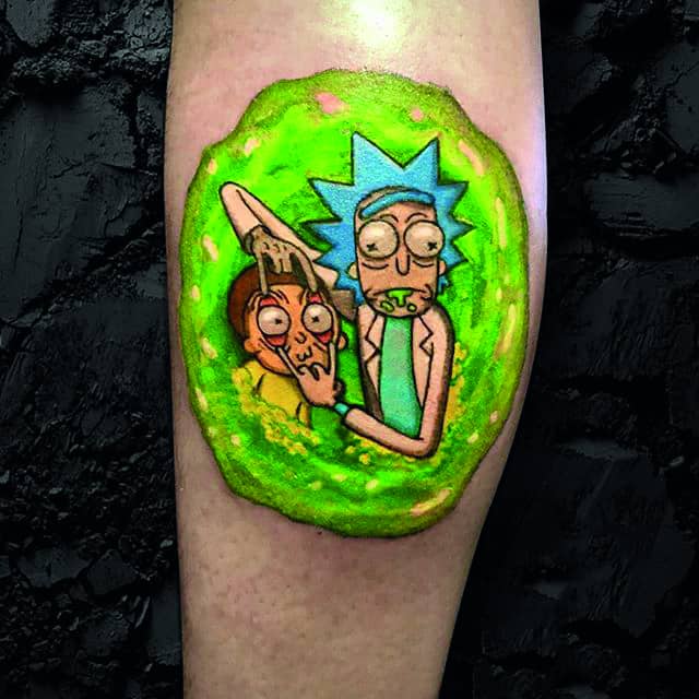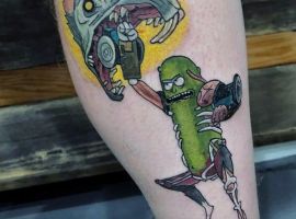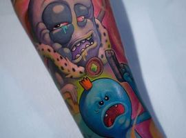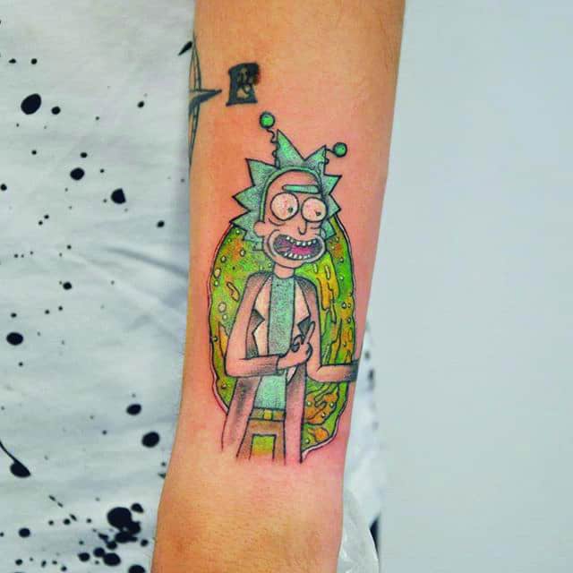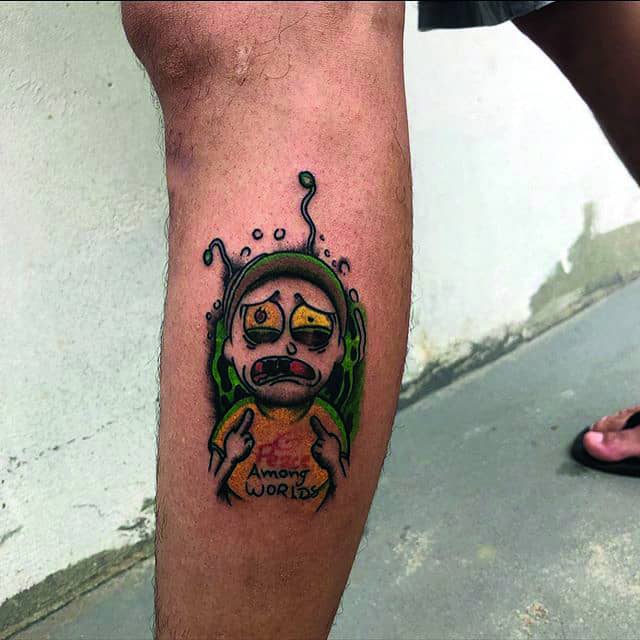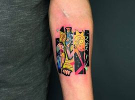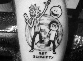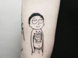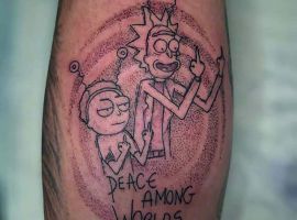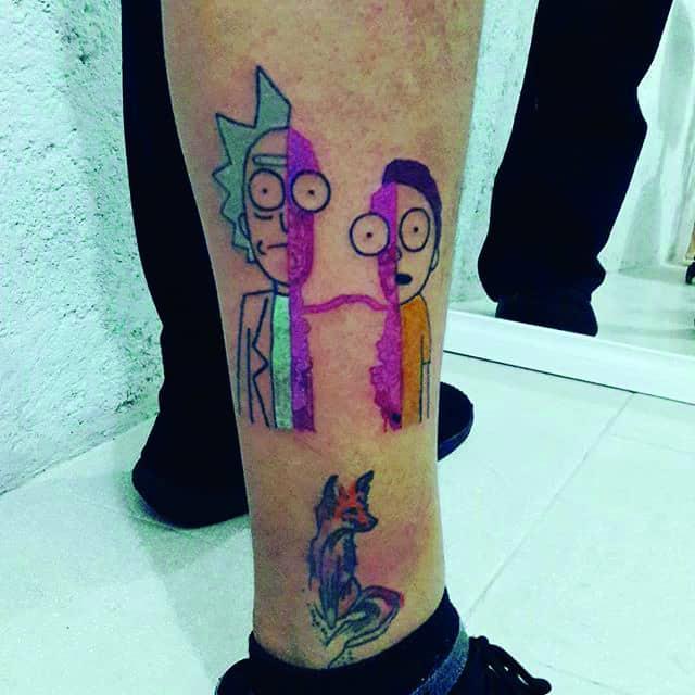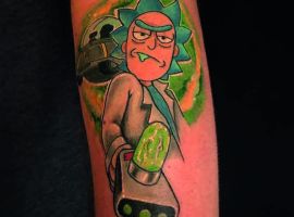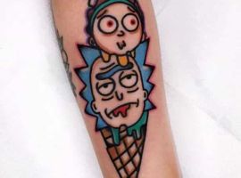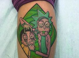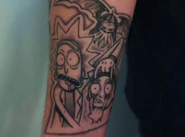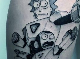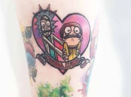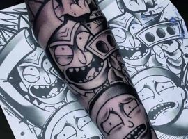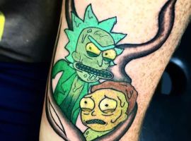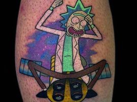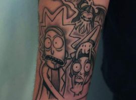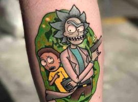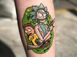 На сегодняшний день у мультика много фанатов в разных уголках планеты. Тематика приключений сквозь измерения впечатляет и завораживает зрителей. Смесь циничности Рика и тяга к приключениям Морти заставляют полюбить мультфильм. Ведь помимо захватывающего сюжета и характера персонажей, в мультсериале есть отличные шутки. Татуировка с подобными экстравагантными героями не оставит никого равнодушным, а главное – выбор эскизов огромен.