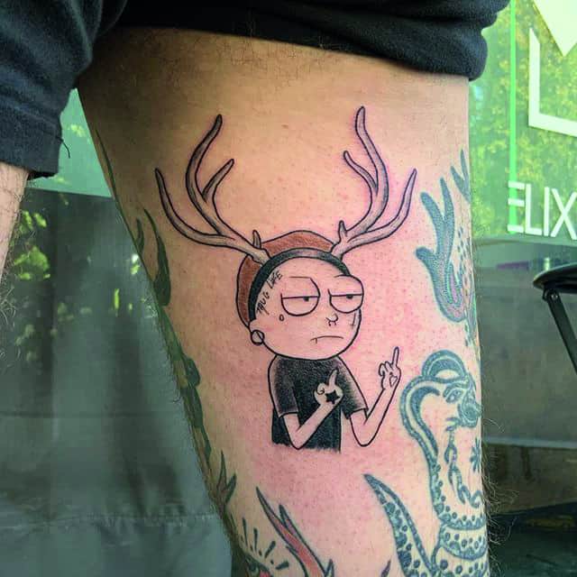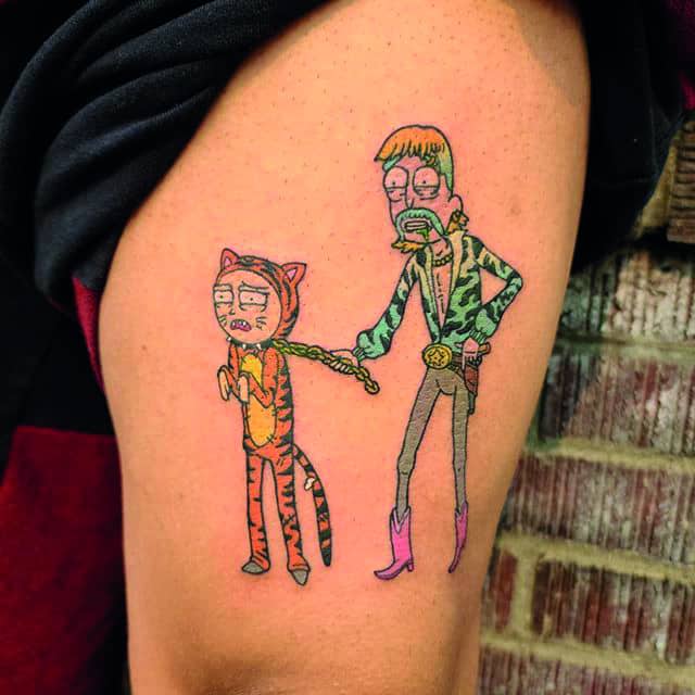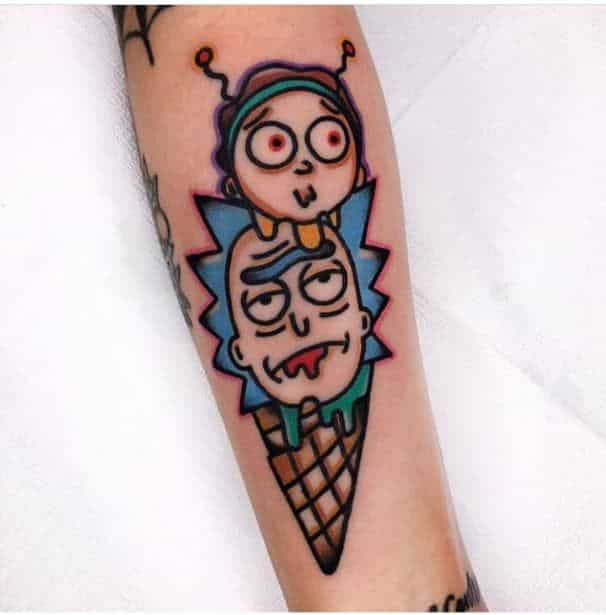Рик – циник, имеющий пристрастие к алкоголю и чёрному юмору. Не боится высказать своё мнение, создаёт невероятные изобретения, которые неподвластны законам логики и физики. Морти, в свою очередь – обычный подросток, легко подвергается чужому мнению, страдающий от неразделённой любви и имеющий тягу к приключениям. Татуировка, со столь разными и в то же время дополняющими друг друга персонажами укажет на разносторонность личности и тягу к чему-то необычному.