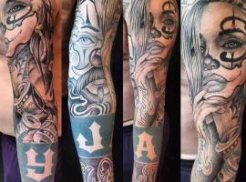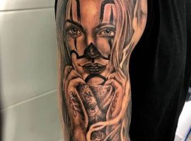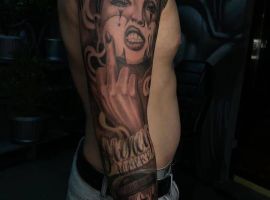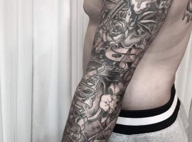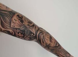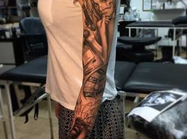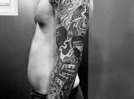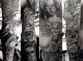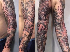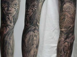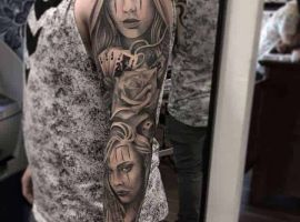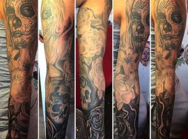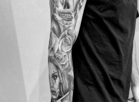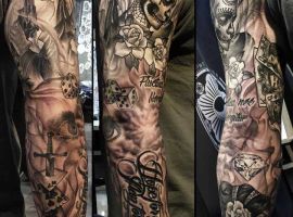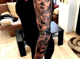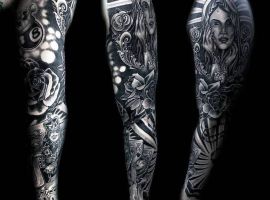 Рукав в стиле чикано – это довольно интересный и креативный вариант. Такая татуировка украсит сильного мужчину и девушку, которая точно знает, чего она хочет от жизни. Обращайтесь в наш тату салон Альянс в Киеве, и мы выполним для вас стильный рукав в этом стиле.