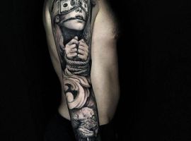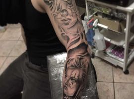 Рукав в стиле чикано нельзя назвать самым стандартным решением. Он, безусловно, будет привлекать внимание окружающих глубокой смысловой нагрузкой символов и неординарной техникой выполнения. Конечно, при выборе идеи стоит ориентироваться на всю эту символику. Тату чикано рукав могут сделать мастера нашего тату салона.