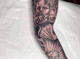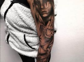 Для тату в стиле чикано, и рукавов в частности, характерна религиозная тематика.