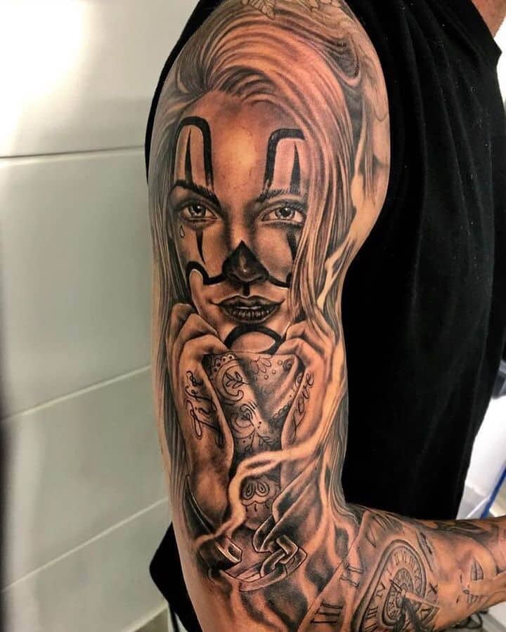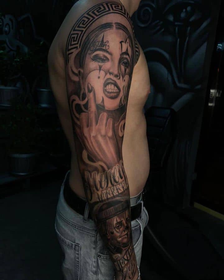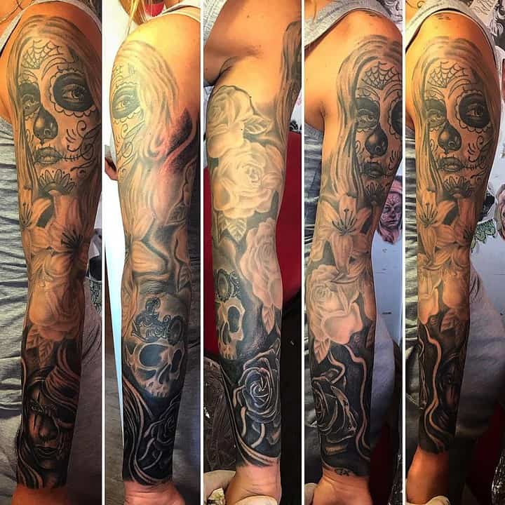 Татуировки в основном выполняют мужчины. Пусть даже чикано уже не ассоциируется с чем-то криминальным, девушки не стремятся выбирать рукава в том стиле. Дело в том, что скорее тут речь идет о самом сюжете рисунка.