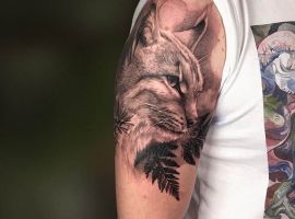 Тату Рысь – отличный вариант для людей решительных, рассудительных и нацеленных результат. Дело в том, что этими чертами обладает хищник из семейства кошачьих. Рыси не только грациозны и красивы, но и обладают удивительной хитростью. Они могут преследовать добычу по несколько часов, затаиваться в засаде так, что даже самый аккуратный грызун будет обречен на гибель. Выбирая тату с рысью стоит учитывать все эти особенности. Будет отлично, если черты характера человека совпадают с особенностями поведения животного.