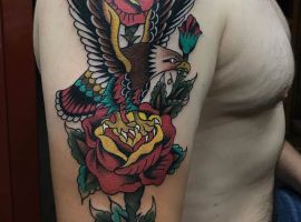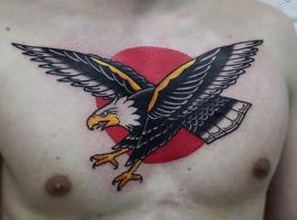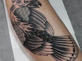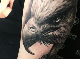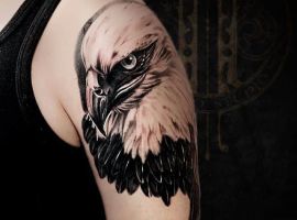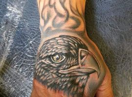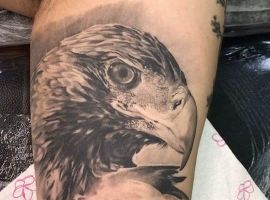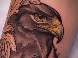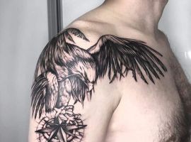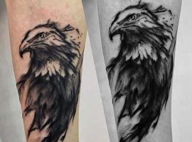 - Орел с крыльями. Татуировка с этим сильным существом символизирует независимость и свободу. Летящий орел говорит о том, что человек не полагается на кого-то другого, в жизни он привык добиваться всего сам. Орел – невероятно умное животное. Поэтому изображение с ним рассказывает и об интеллектуальных способностях.