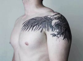 - Ворон. Это тоже символ свободомыслия, любви к переменам. Татуировка особенно популярная у представителей сильной половины человечества. Рисунок рассказывает о желании быть независимым.