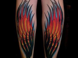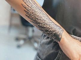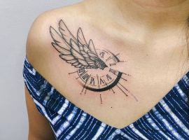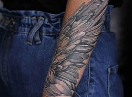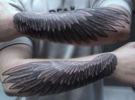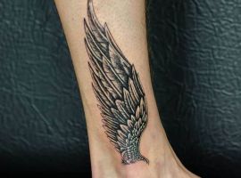 Также довольно часто выбирают и изображение крыльев целиком без непосредственного изображения какой-то птицы. Крылья выполняют в распахнутых, сложенных вариантах. Отлично такой рисунок смотрится масштабным на спине. Но можно выбрать и миниатюрные крылья, к примеру, на запястье или щиколотке.