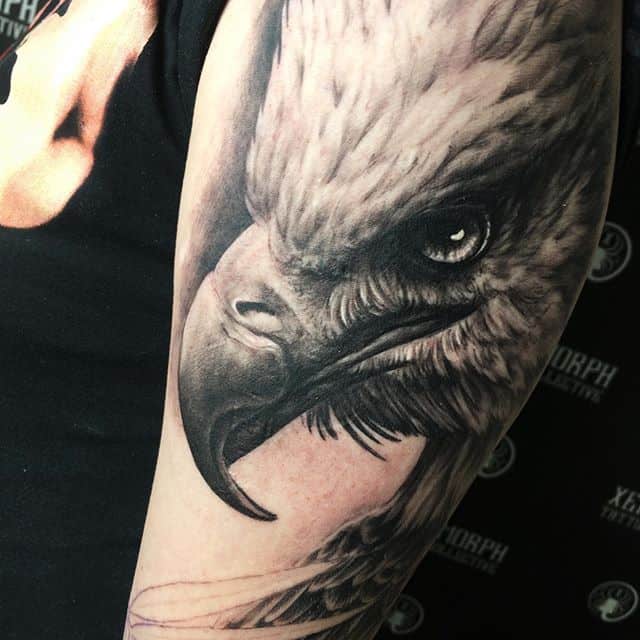 - Орел с крыльями. Татуировка с этим сильным существом символизирует независимость и свободу. Летящий орел говорит о том, что человек не полагается на кого-то другого, в жизни он привык добиваться всего сам. Орел – невероятно умное животное. Поэтому изображение с ним рассказывает и об интеллектуальных способностях.