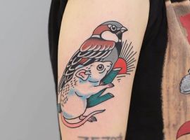 Татуировки с птицами очень популярны среди парней и девушек. Эти рисунки не только очень красиво смотрятся, но и имеют интересный символизм. При чем смысл у каждой птички как образа будет свой. Тату специалисты делятся интересным значением татуировки синица, воробей.