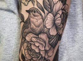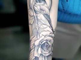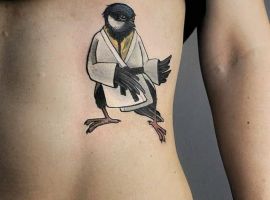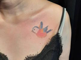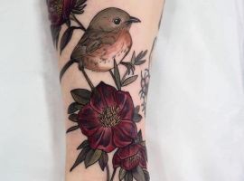 Менее популярная птичка для тату – снегирь. Эта зимняя птица с красным животиком обозначает свободу и движение к своим целям, лучшей жизни. Снегири не боятся холода и готовы пролететь много километров в поисках своего пристанища. Поэтому и татуировка обычно символизирует готовность бороться за свое место, сила духа и бесстрашие перед трудностями, неприятностями.