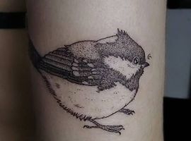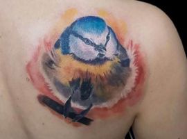 Милая маленькая птичка, с узнаваемым окрасом, очень привлекательно и эстетично смотрится. Потому ее частенько наносят на кожу в виде тату. При этом, синичка интересно выглядит и в больших реалистичных тату, и в маленьких цветных рисунках.