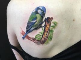Конечно, синичка более женский образ. Она выглядит нежно, воздушно и изящно. Потому такую идею чаще выбирают девушки. Место для этого выбирают в зависимости от объема рисунка: ключицу, лодыжку, плече или предплечье.
