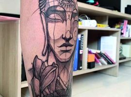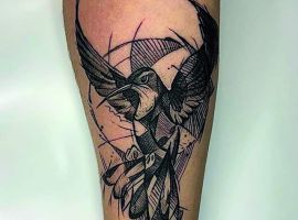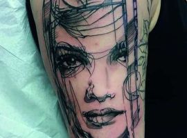 Тату скетч напоминают рисунки, выполненные тонким простым карандашом, благодаря этой технике рисунок получается утонченным, изящным и нетривиальным. Абсолютно любая идея, выполненная в таком стиле, смотрится по-новому, оригинально и стильно. Чаще всего так изображают животных, портреты и цветы.
