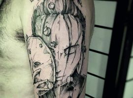Конечно, если Вам нравится такая идея, то мастера стоит искать опытного и имеющего именно художественные навыки. Конечно, в интернете можно найти готовые эскизы в стиле скетч. Однако, если Вы хотите носить на своей коже уникальный рисунок, то мастер должен быть в состоянии нарисовать его собственноручно от руки, или с помощью графического планшета.