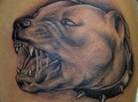 Но также дают татуировки и люди, которым просто нравится характер или внешний вид собаки. Эскиз будет означать как большую физическую силу, так и активность, преданность. В некоторых случаях, особенно если рисунок с оскаленной пастью, тату стафф терьера может символизировать чувство скрытой агрессии, желание сражаться за свои идеалы.