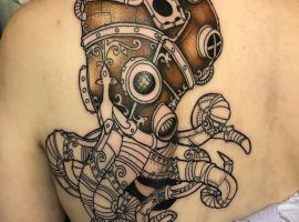 Поэтому стимпанк уже набивают и в цвете. А помимо механизмов в человеческом теле изображают и технические детали, как органы животных. Самое главное, найти настолько опытного мастера, как в салоне Альянс в Киеве, который сможет передать все необходимые детали такого необычного изображения.