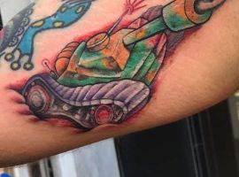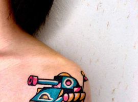 - нью-скул. В этом случае танк будет выглядеть так, словно его нарисовал уличный художник. Отличительными деталями стиля являются яркие, даже неоновые краски. Такая татуировка не позволит остаться незамеченным, но со временем может потребовать коррекции;