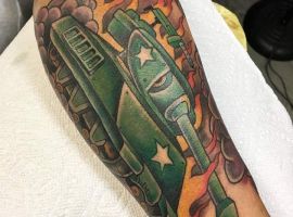 Может показаться, что танк – мотив, который сложно обыграть необычным образом. Но это не так. Например, многое зависит от выбранного ракурса. На первом плане может быть дуло танка или его гусеницы. Танк можно изобразить сверху или снизу: от этого может зависеть общий вид татуировки и даже ее смысл.