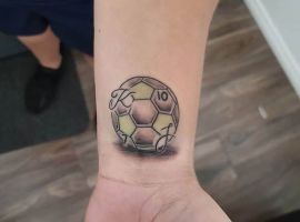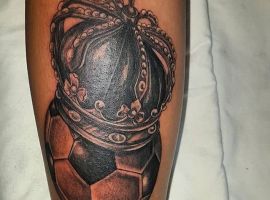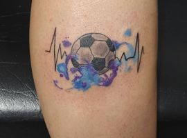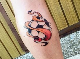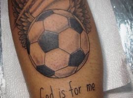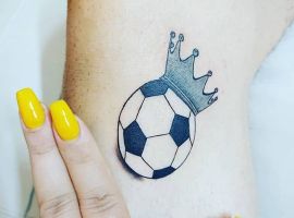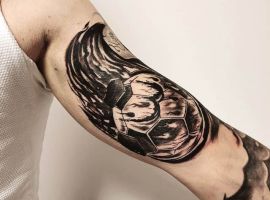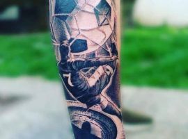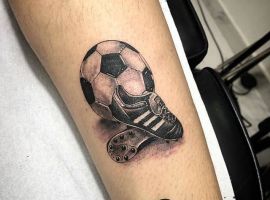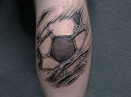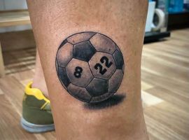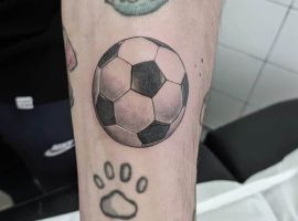 Самое популярное изображение у футболистов и их фанатов – футбольный мяч, выполненный в черно-белом цвете. Иногда эту татуировку делают в двух оттенках: черно-красным, либо синим.