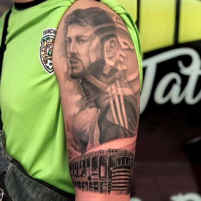 Зачастую татуировки мяча или футболиста на теле выполняют в стиле реализм. Особенно если это портрет игрока. Эффектно и необычно выглядят футбольные тату олд- или нью-скул стиле.