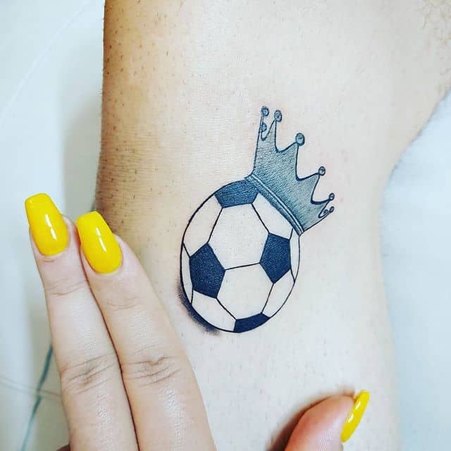 - Тату мяч с короной набивают личности, стремящиеся к победе, указывает на высокую самооценку.