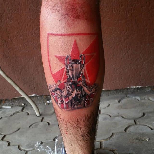 Наиболее популярные эскизы татуировок у болельщиков и футболистов связанны с околофутбольной темой и всем, что связанно с этим видом спорта.
